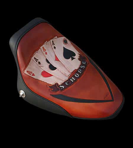 Bei BLOCKHEAD sind handgeprägte Sitzbänke unsere besondere Expertise. Fast jedes Motiv und jede Farbnuance können wir für Dich ins Leder einbringen. Exklusive Elemente wie Rochenleder und Silberapplikationen heben die Individualität Deines Motorradsitzes hervor. Für Dein Custom Bike ist ein authentischer BLOCKHEAD Sitz das perfekte Highlight.