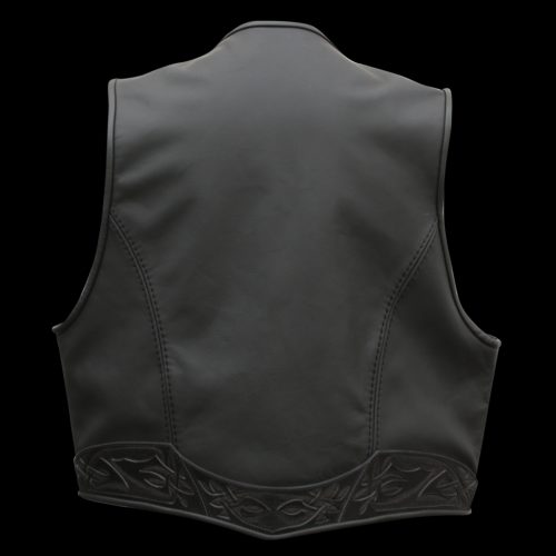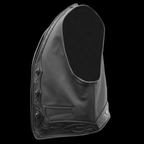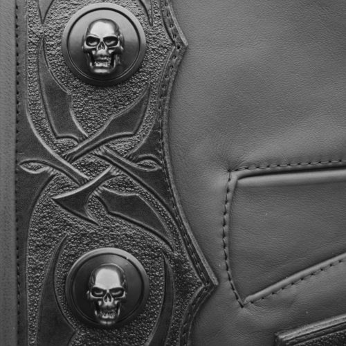 Viel Farbe Hauptsache schwarz… Diese Westen sind schwarz und stabil. Die Revers sind mit schwarzen Punzierungen versehen. In der Breite bleibt genug Platz für die eigenen Frontflashs. Der Rücken ist breit geschnitten und die Punzierungen verlaufen nur am unteren Rand. Auch hier ist genug Platz für ein Rückenpatch. An den Seiten ist ein Siterocker immer gut aufgehoben! Das Leder ist matt Schwarz und richtig stabil, es kann Wind und Wetter trotzen. Die Conchos sind aus einer Stahllegierung und werden hochwertig beschichtet. Natürlich schwarz. Sie dienen auch als Verschluß mit unseren extrem haltbaren Kettenkarabinern. Diese Westen sind aufgrund unserer jahrelangen Erfahrungen in der Rockerszene entstanden. Wir wissen was Ihr wollt. Natürlich können wir Euer Patch und die Clubabzeichen gleich mit aufnähen. Wir können die Teile mit Leder unterlegen und genau nach Euren Wünschen platzieren.