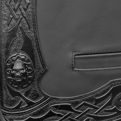 Viel Farbe Hauptsache schwarz… Diese Westen sind schwarz und stabil. Die Revers sind mit schwarzen Punzierungen versehen. In der Breite bleibt genug Platz für die eigenen Frontflashs. Der Rücken ist breit geschnitten und die Punzierungen verlaufen nur am unteren Rand. Auch hier ist genug Platz für ein Rückenpatch. An den Seiten ist ein Siterocker immer gut aufgehoben! Das Leder ist matt Schwarz und richtig stabil, es kann Wind und Wetter trotzen. Die Conchos sind aus einer Stahllegierung und werden hochwertig beschichtet. Natürlich schwarz. Sie dienen auch als Verschluß mit unseren extrem haltbaren Kettenkarabinern. Diese Westen sind aufgrund unserer jahrelangen Erfahrungen in der Rockerszene entstanden. Wir wissen was Ihr wollt. Natürlich können wir Euer Patch und die Clubabzeichen gleich mit aufnähen. Wir können die Teile mit Leder unterlegen und genau nach Euren Wünschen platzieren.